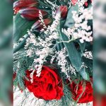 This modern arrangement of flowers was made with a dozen roses and a beautiful palm leaf to create a unique look.